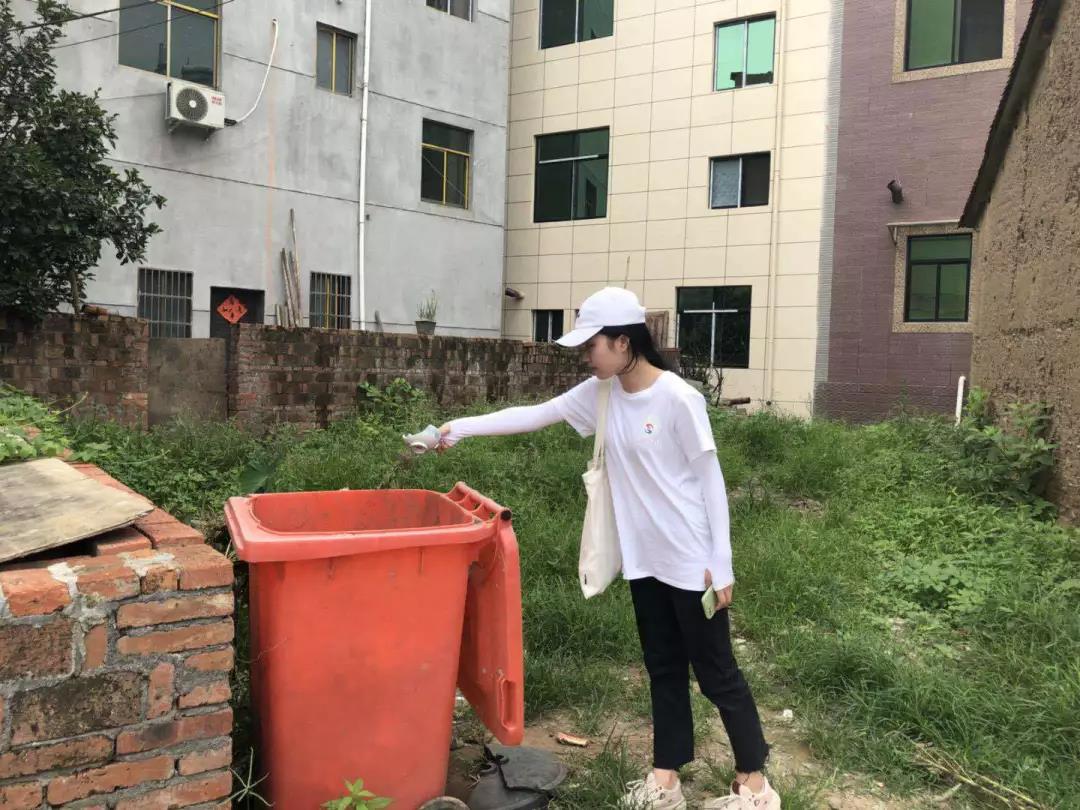 垃圾分类宣传组向村民讲解了处理可回收垃圾、有害垃圾、湿垃圾、干垃圾的基本方法,并以更加通俗化的语言阐述了垃圾分类的原因及其重要意义,使村民们更愿意、更容易投入到垃圾分类的行动中。在宣传的同时,队员们更是自发对沿路的垃圾进行了处理。五颜六色的雨伞不停歇地穿梭在村子里,仿佛开放着的五颜六色的花朵,为屠宅增添了一抹颜色。