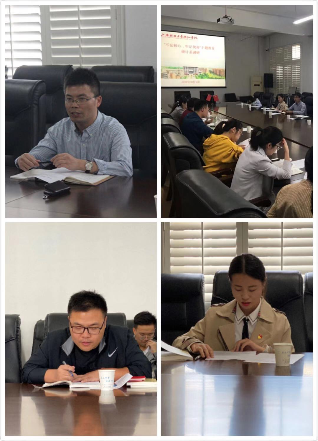 会上,统计系学生党支部负责人王雨晴领学《习近平关于“不忘初心、牢记使命”论述摘编》第九章。教师党员罗平、李歆,学生党员胡俏婷分别根据自身的岗位职责结合主题教育畅谈了学习体会。